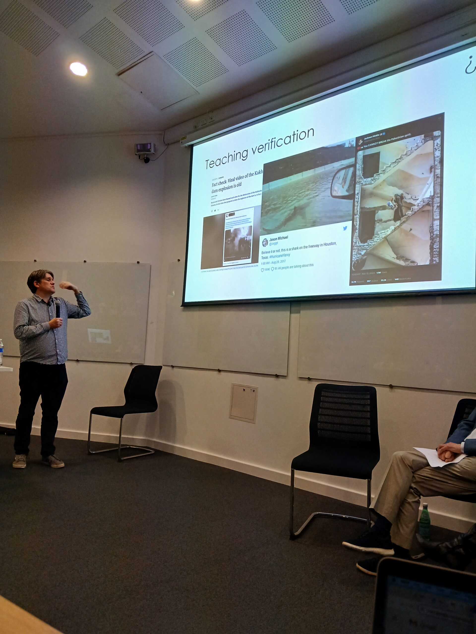 Ross Higgins, Head of Bellingcat’s Financial Investigations Team, then spoke about how Bellingcat uses AI in its open source investigations. He also showed how AI was being used by certain governments and organisations to create deepfakes to try and influence election, citing Armenia as an example. He stated that AI is a new challenge and because of this we need to know the tools available to understand what we are looking at/reading and to question it. However, he did say that people have become savvy to fake information on the internet created by AI and are more sceptical, making it harder for disinformation campaigns.